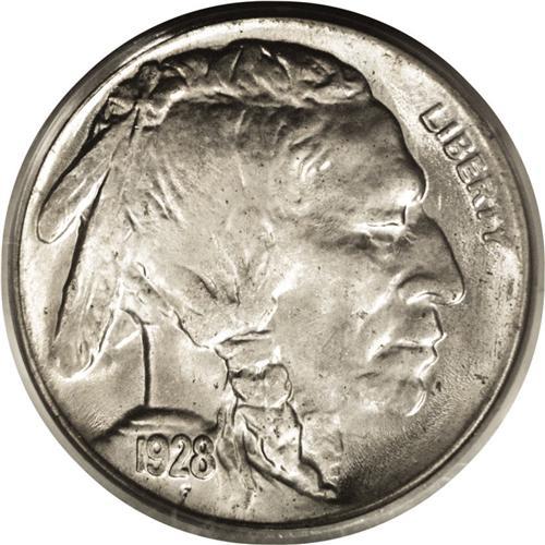 <B>1928-S<5C> MS65 PCGS.</B></I> Light apricot and sky-blue toning visits this shimmering and sharply impressed Gem. The date, mintmark, and the bison's head have especially pleasing definition. The right fields exhibit an 'orange peel' texture characteristic of late dies. No marks are apparent, although a few pinpoint flyspecks are detected. Population: 50 in 65, 5 finer (9/06).