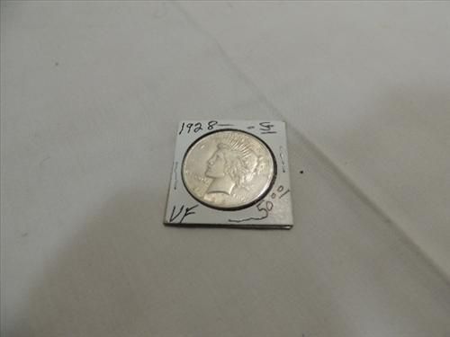 1928-S CIRCULATED (VF) PEACE SILVER DOLLAR. AS SHOWN. VIEW PICTURE FOR DETAIL.