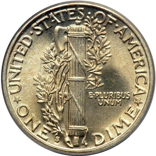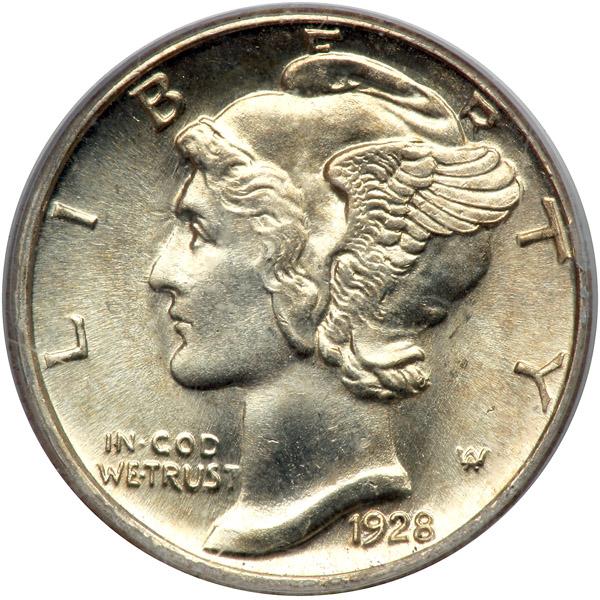 1928-S Mercury Dime. PCGS graded MS-65 Full Bands PQ. Housed in an Old Green Holder. Well struck and a brilliant white Gem. Pop 54; 35 finer, 29 in 66FB, 6 in 67FB (PCGS # 4971) .