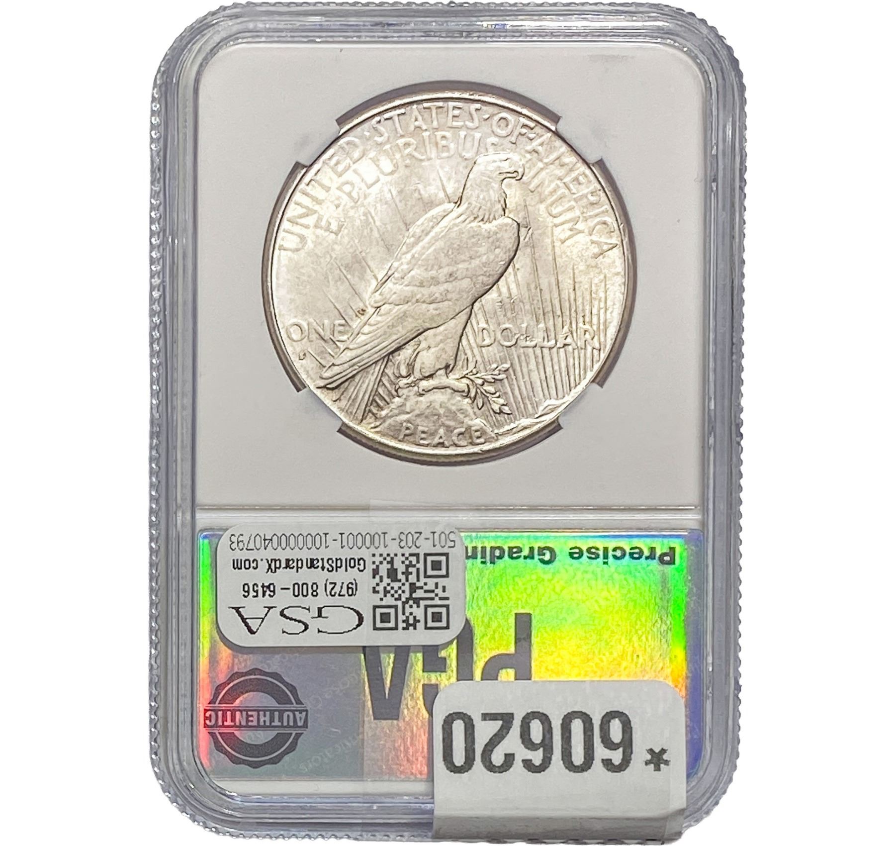 e. Coins sold referencing a third-party grading service are sold “AS IS” without any express or implied warranty, except for a guarantee by GSA that they are genuine. Removal or alteration of the holder, voids all of Bidder’s claims concerning that Product. Certain warranties may be available from the grading services and Bidders are referred to them for further details: Numismatic Guaranty Corporation (NGC), PO Box 4776, Sarasota, FL 34230, www.ngccoin.com/services/writtenguarantee.asp; Professional Coin Grading Services (PCGS), PO Box 9458, Newport Beach, CA 92658, www.pcgs.com/guarantee.html; ANACS, 6555 S. Kenton St., Ste. 303, Englewood, CO 80111; and Independent Coin Grading Co. (ICG), 7901 East Bellview, Ave., Suite 50, Englewood, CO 80111.