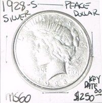 1928-S PEACE SILVER DOLLAR RED BOOK VALUE IS $250.00 *EXTREMELY RARE KEY DATE MS-60 HIGH GRADE*!! ***Coin, Currency & All Items Listed in this auction - Grades, Conditions and Values are not Safe Deposit Coins LLC Responsibilty. Grades, Condition and Values are determined by Consigner(s) & Buyers ONLY
