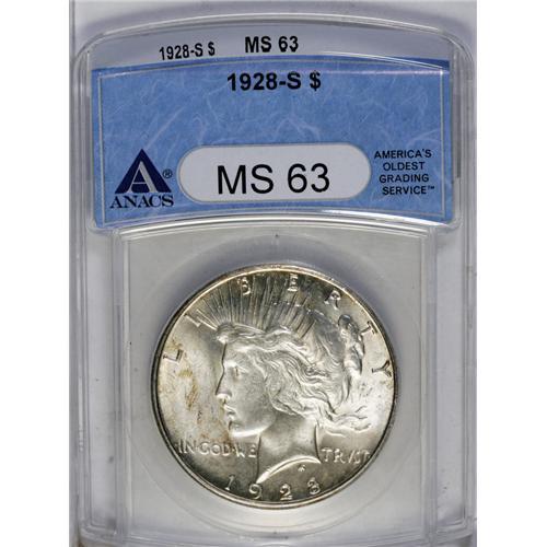 1928-S S$1 MS63 ANACS. Scattered, subtle russet color 1928-S