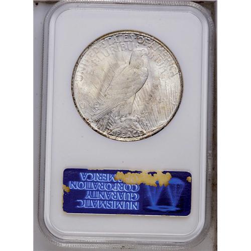 <B>1928-S<img border='0' src='http://www.heritagecoins.com/images/star.gif' width=10 height=10>$1> MS64 NGC.</B></I> Lustrous, frosty silver-gray surfaces with hints of russet toning in the protected areas. Somewhat softly struck on the eagle's wing feathers, but pleasingly detailed elsewhere. NGC has graded only 36 examples finer (3/06). <BR><BR><B>Important notice:</B> Heritage usually auctions material at the rate of 200-250 lots per hour. On some occasions eBay Live bid software or the Internet may not be able to keep up with the pace of the auction. We recommend placing a realistic absentee bid now as insurance to avoid disappointment. Occasionally the auctioneer may eliminate or reject an eBay Live bid, and the auctioneer may also reopen a lot after the close of the eBay live bidding (usually because we missed an audience bid), and may reject your bid even if it shows you as the winning bidder. By bidding via eBay Live, you agree that Heritage may award the lot to another bidder at its sole discretion under the circumstances described above or any other reasonable circumstances. Since eBay bids are not shown to us until we open the lot on the floor, we treat those bids just like floor bids. In most cases the floor responds before the eBay bid is presented to us, due to Internet lag time, so for consistency we have made it a policy that floor bids are always considered first over tie eBay live bids. Also please note that all Heritage lots purchased through eBay Live carry a 20% Buyer's Premium. Please make sure you read the Terms and Conditions before you bid. This lot is being auctioned in conjunction with a live floor auction by Heritage Galleries & Auctioneers. All final auction and invoice information will be supplied by Heritage Galleries & Auctioneers, and all other information should be considered preliminary. Lot:3866 <BR><BR><B>Winning Notification and Billing:</B> After the FINAL session in this auction is complete, Heritage will send e-mail and snail mail invoices. This process normally takes several days. All final auction and invoice information will be supplied by Heritage Galleries & Auctioneers, and all other information should be considered preliminary. <BR><BR>This auction will be conducted on a live auction floor and over the Internet through eBay Live. If you choose to place an absentee bid, please take a moment to <font color='#0000ff'><u><a href='http://pages.ebay.com/liveauctions/help/before/laabsentee.html'>learn how eBay Live absentee bidding works</a></u></font><font color='#000000'>