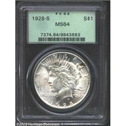 1928-S S$1 MS64 PCGS. VAM-3. IN GOD WE TRUST and the designer's monogram are die doubled. An underap