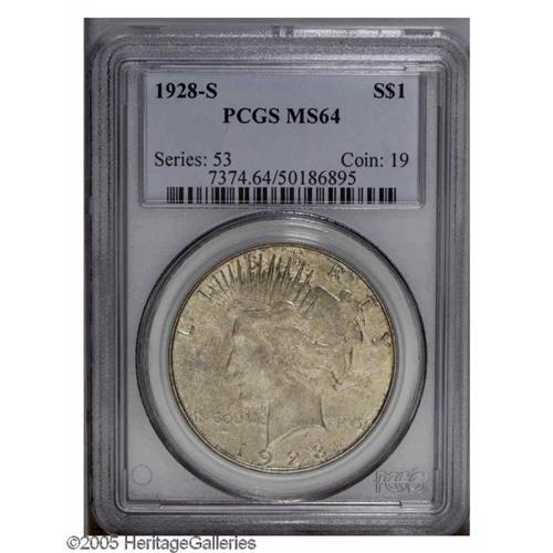 1928-S S$1 MS64 PCGS. Well struck and vibrantly lustro 1928-S[S$1] MS64 PCGS.