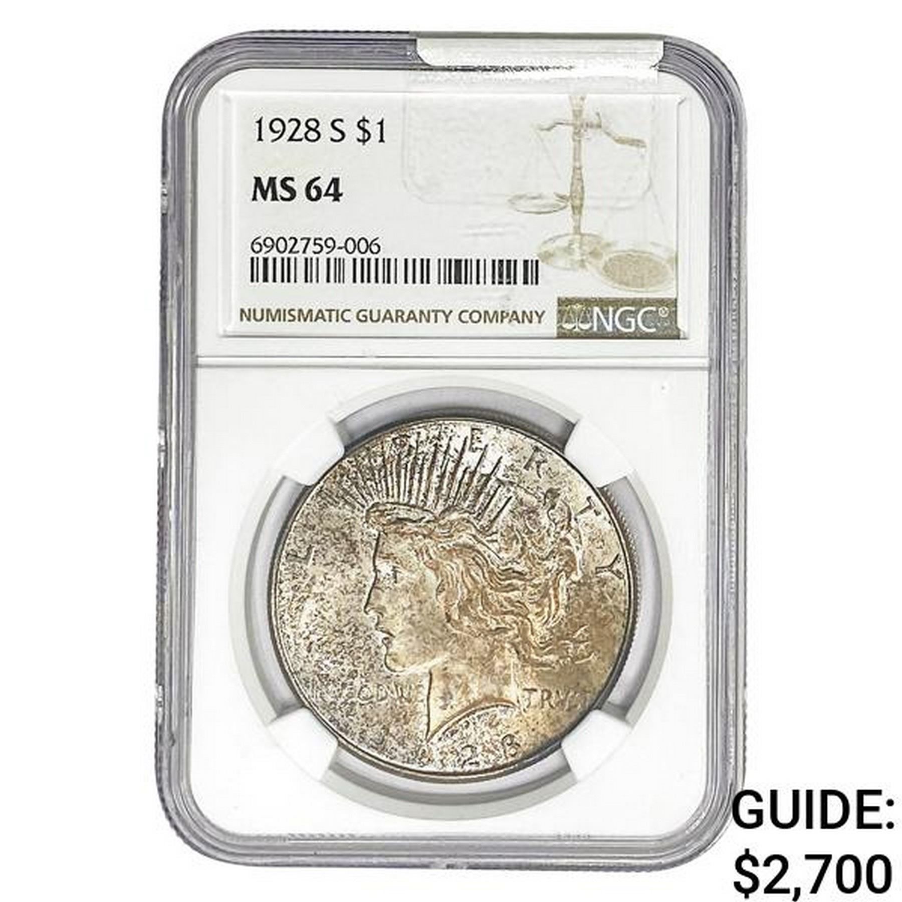 1928-S Silver Peace Dollar NGC MS64