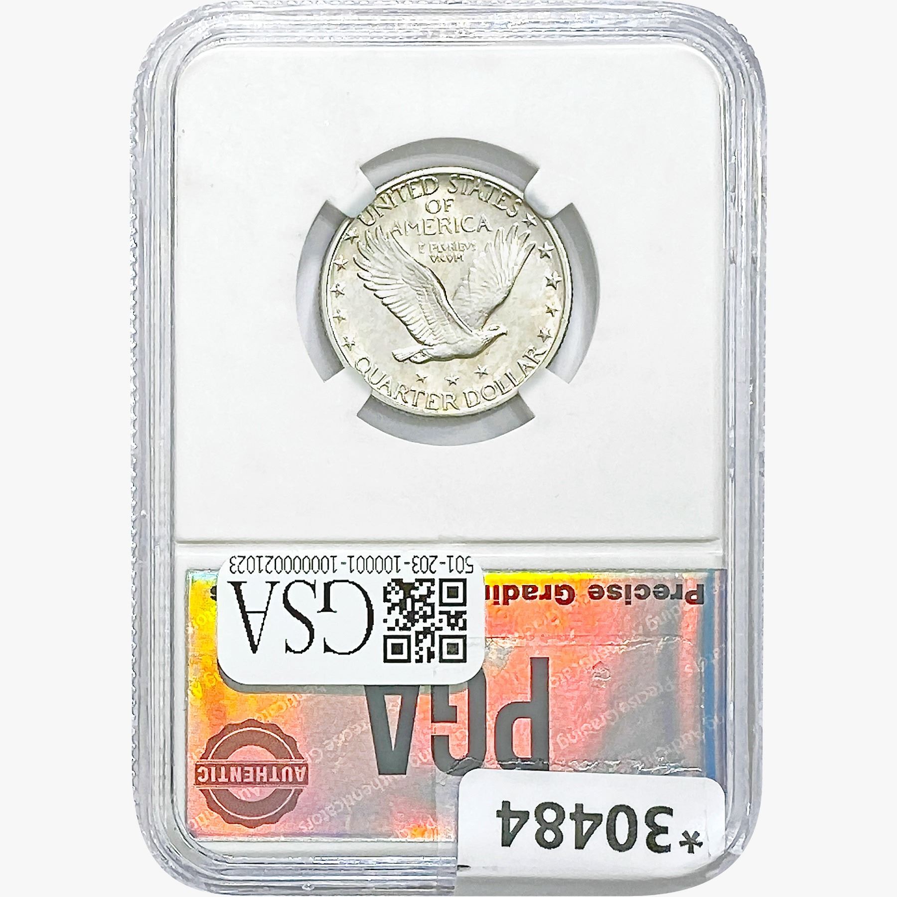 COINS AND CURRENCY LISTED IN GSA’S CATALOG AS GRADED AND ENCAPSULATED BY PCGS, NGC, ANACS, ICG, PCGS CURRENCY, PMG, PCGS BANKNOTE GRADING, CMC OR ANY OTHER THIRD-PARTY GRADING SERVICE ARE LIKEWISE SOLD “AS-IS” EXCEPT AS EXPRESSLY SET FORTH HEREIN. ALL THIRD-PARTY GRADING SERVICE GUARANTEES, INCLUDING AUTHENTICITY, ARE THE SOLE RESPONSIBILITY OF THE THIRD-PARTY GRADING SERVICE AND NOT WARRANTIES OR GUARANTEES OF GSA. BIDDERS SHOULD CONTACT THESE THIRD-PARTY GRADING SERVICES DIRECTLY WITH RESPECT TO ANY CLAIMS OR QUESTIONS THEY MAY HAVE CONCERNING THEIR GUARANTEES AND WARRANTIES. BIDDERS ACKNOWLEDGE AND AGREE THAT AUCTIONEER IS NOT BOUND BY OR LIABLE FOR ANY OPINION OR CERTIFICATION BY ANY THIRD-PARTY GRADING SERVICE. REMOVAL OF A PRODUCT FROM ITS PROTECTIVE CASING OR HOLDER OR ALTERATION OF ANY COIN HOLDER WAIVES ALL RIGHTS CONCERNING THE PRODUCT CONTAINED THEREIN.