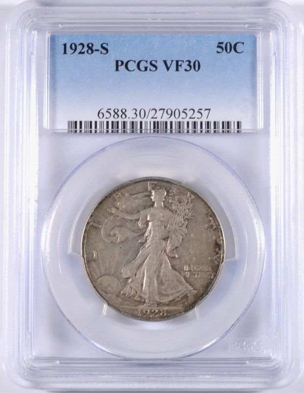 1928-S WALKING LIBERTY HALF DOLLAR, PCGS VF-30