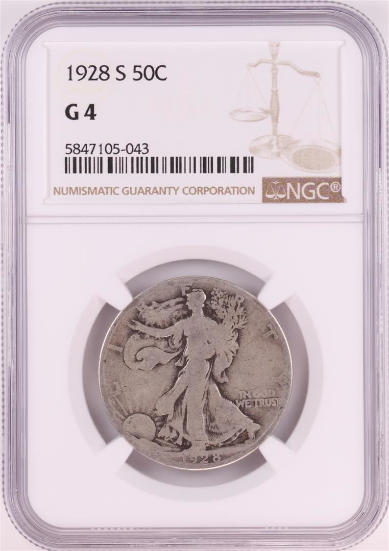 One 1928-S Walking Liberty Half Dollar Coin NGC G4. NGC Certified.