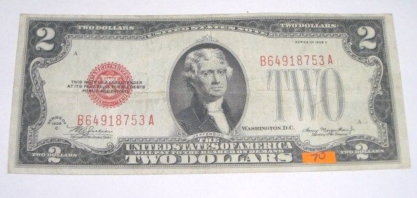 1928 SERIES C $2 RED SEAL CERTIFICATE SERIAL # B64918753A *RARE CRISPY NICE BILL*!! ***Coin, Currency & All Items Listed in this auction - Grades, Conditions and Values are not Safe Deposit Coins LLC Responsibilty. Grades, Condition and Values are determined by Consigner(s) & Buyers ONLY