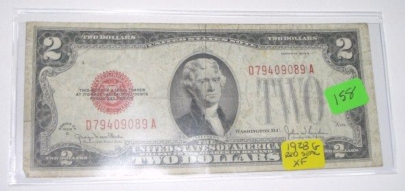 1928 SERIES G $2 RED SEAL BILL *RARE EXTRA FINE HIGH GRADE* SERIAL # D79409089A!! ***Coin, Currency & All Items Listed in this auction - Grades, Conditions and Values are not Safe Deposit Coins LLC Responsibilty. Grades, Condition and Values are determined by Consigner(s) & Buyers ONLY***