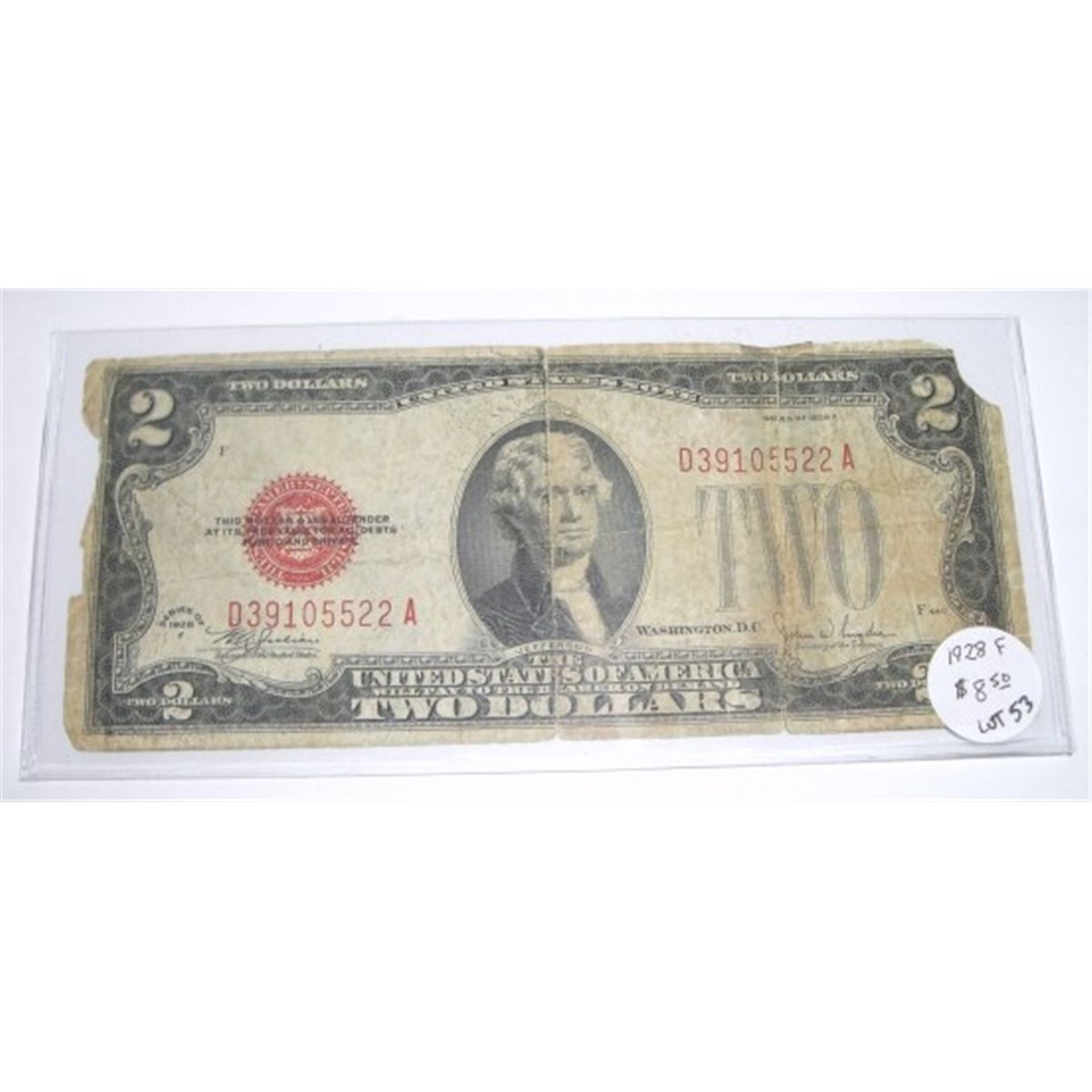 1928 Series F $2 Red Seal Bill *FINE GRADE* Serial # D39105522A!! ***Coin, Currency & All Items Listed in this auction - Grades, Conditions and Values are not Safe Deposit Coins LLC Responsibilty. Grades, Condition and Values are determined by Consigner(s) & Buyers ONLY***