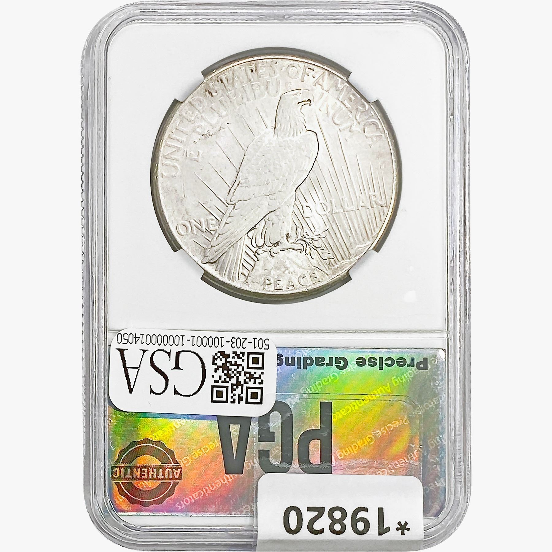 l. All non-certified coins and currency are guaranteed genuine, but are not guaranteed as to grade, since grading is a matter of opinion, an art and not a science, and therefore the description rendered by GSA or any third-party grading service may not agree with the opinion of others (including trained experts), and the same expert may not grade the same item with the same grade at two different times. GSA may, but is not obligated to, express an opinion as to non-certified numismatic items, in GSA's opinion, or by its employees' experience and the current interpretation of the American Numismatic Association's standards as of the date the catalog was prepared. There is no guarantee or warranty expressed or implied that the grading opinions utilized by GSA, if any, will meet the standards of any grading service at any time in the future.