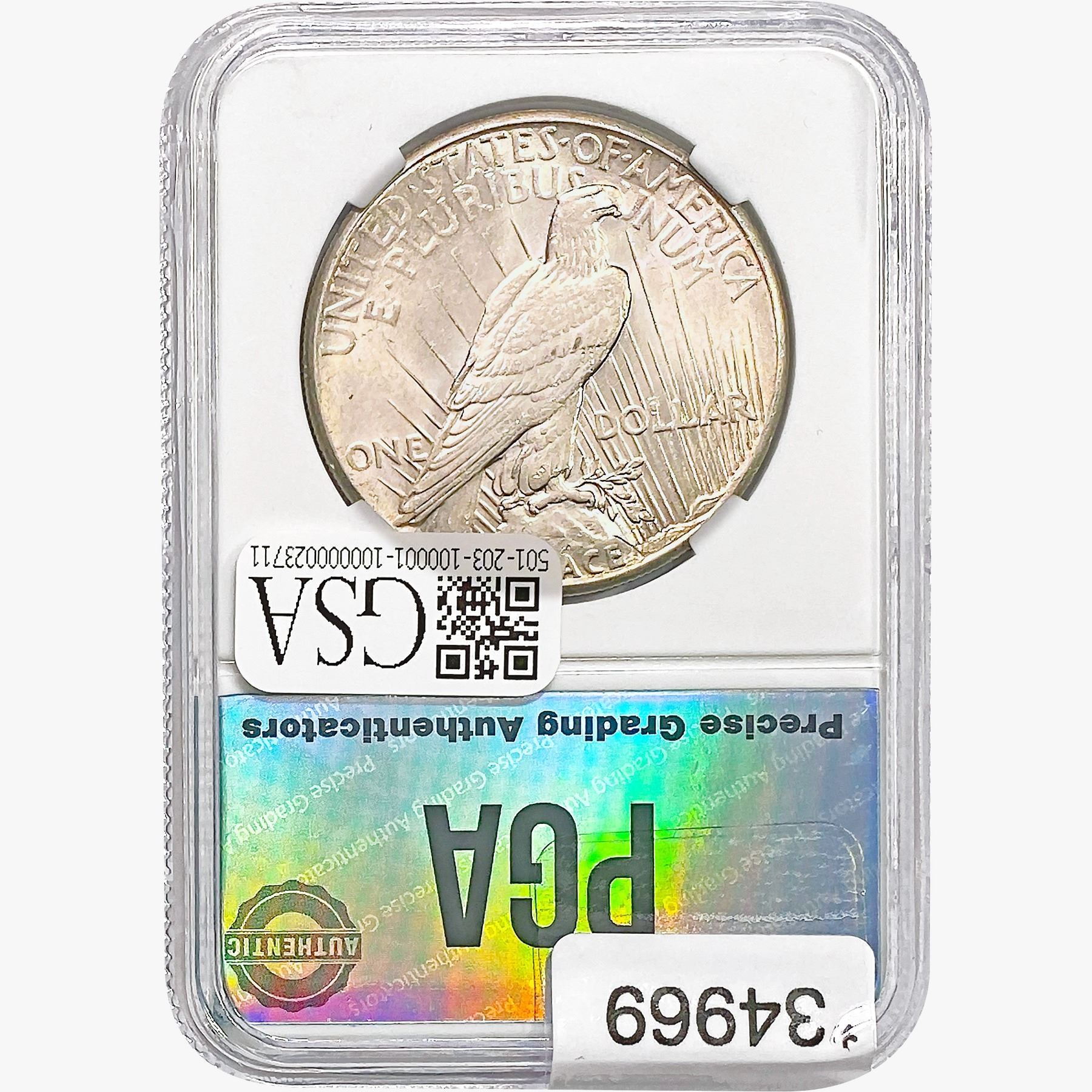 l. All non-certified coins and currency are guaranteed genuine, but are not guaranteed as to grade, since grading is a matter of opinion, an art and not a science, and therefore the description rendered by GSA or any third-party grading service may not agree with the opinion of others (including trained experts), and the same expert may not grade the same item with the same grade at two different times. GSA may, but is not obligated to, express an opinion as to non-certified numismatic items, in GSA’s opinion, or by its employees’ experience and the current interpretation of the American Numismatic Association’s standards as of the date the catalog was prepared. There is no guarantee or warranty expressed or implied that the grading opinions utilized by GSA, if any, will meet the standards of any grading service at any time in the future.