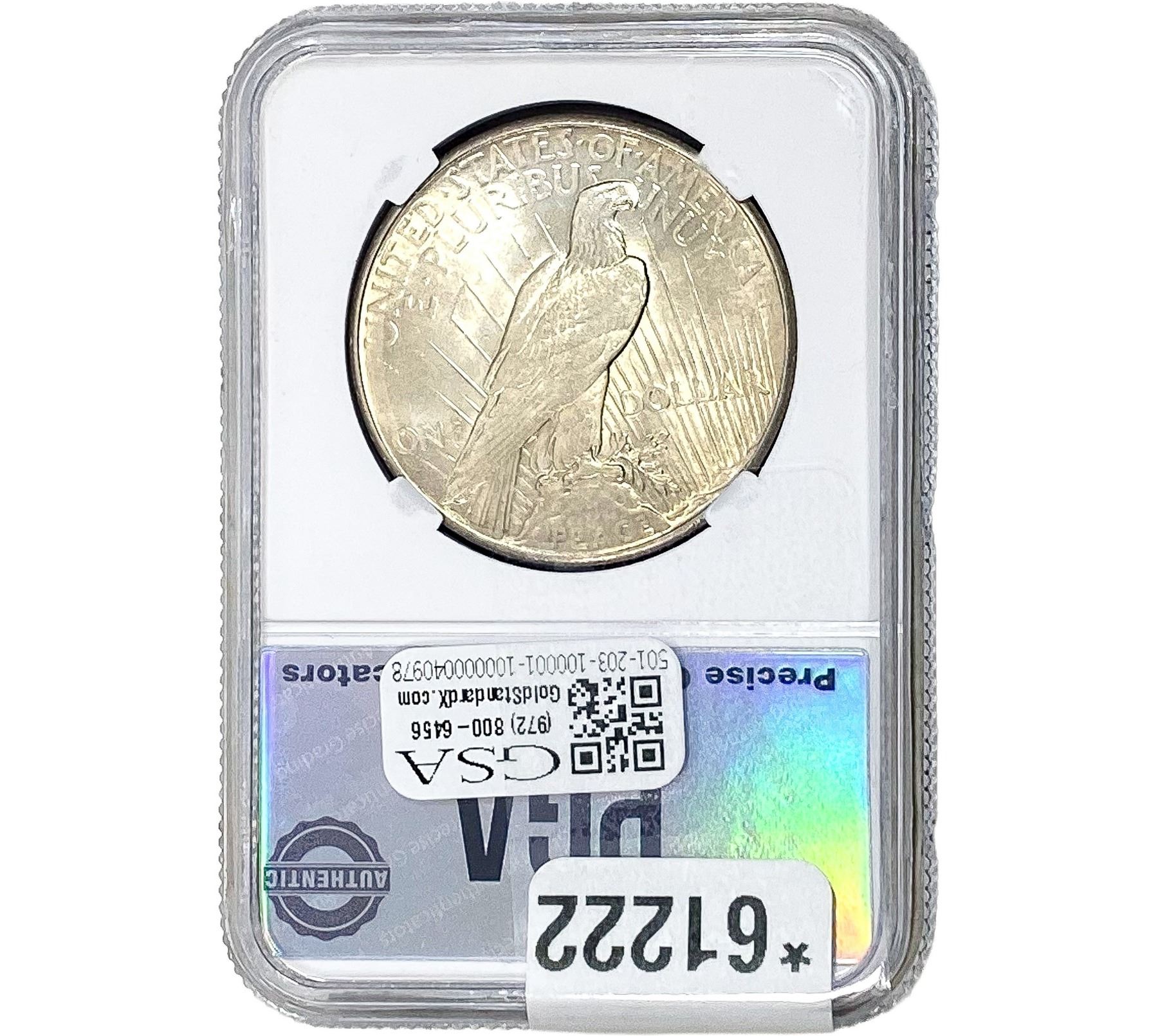 l. All non-certified coins and currency are guaranteed genuine, but are not guaranteed as to grade, since grading is a matter of opinion, an art and not a science, and therefore the description rendered by GSA or any third-party grading service may not agree with the opinion of others (including trained experts), and the same expert may not grade the same item with the same grade at two different times. GSA may, but is not obligated to, express an opinion as to non-certified numismatic items, in GSA’s opinion, or by its employees’ experience and the current interpretation of the American Numismatic Association’s standards as of the date the catalog was prepared. There is no guarantee or warranty expressed or implied that the grading opinions utilized by GSA, if any, will meet the standards of any grading service at any time in the future.