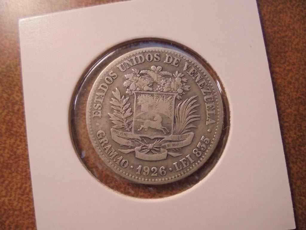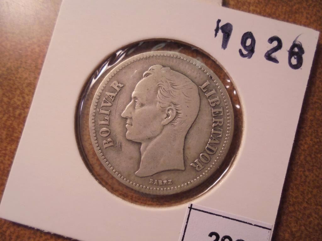 1928 VENEZUELA SILVER 2 BOLIVARS