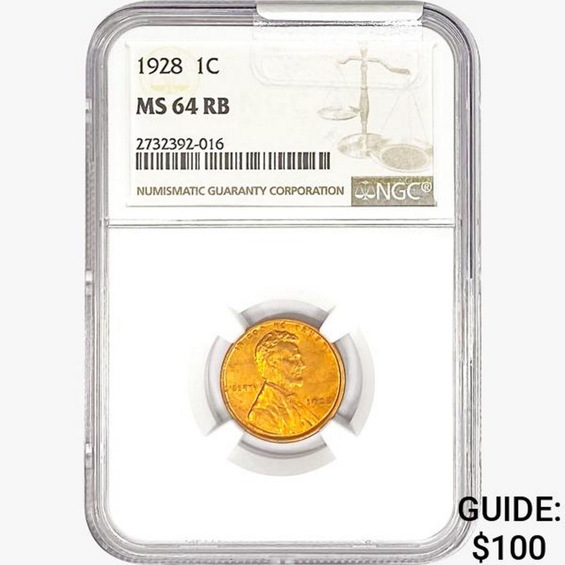 1928 Wheat Cent NGC MS64 RB