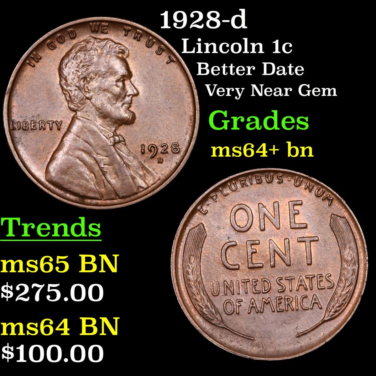1928-d Better Date Very Near Gem Lincoln Cent 1c Grades Choice+ Unc BN.