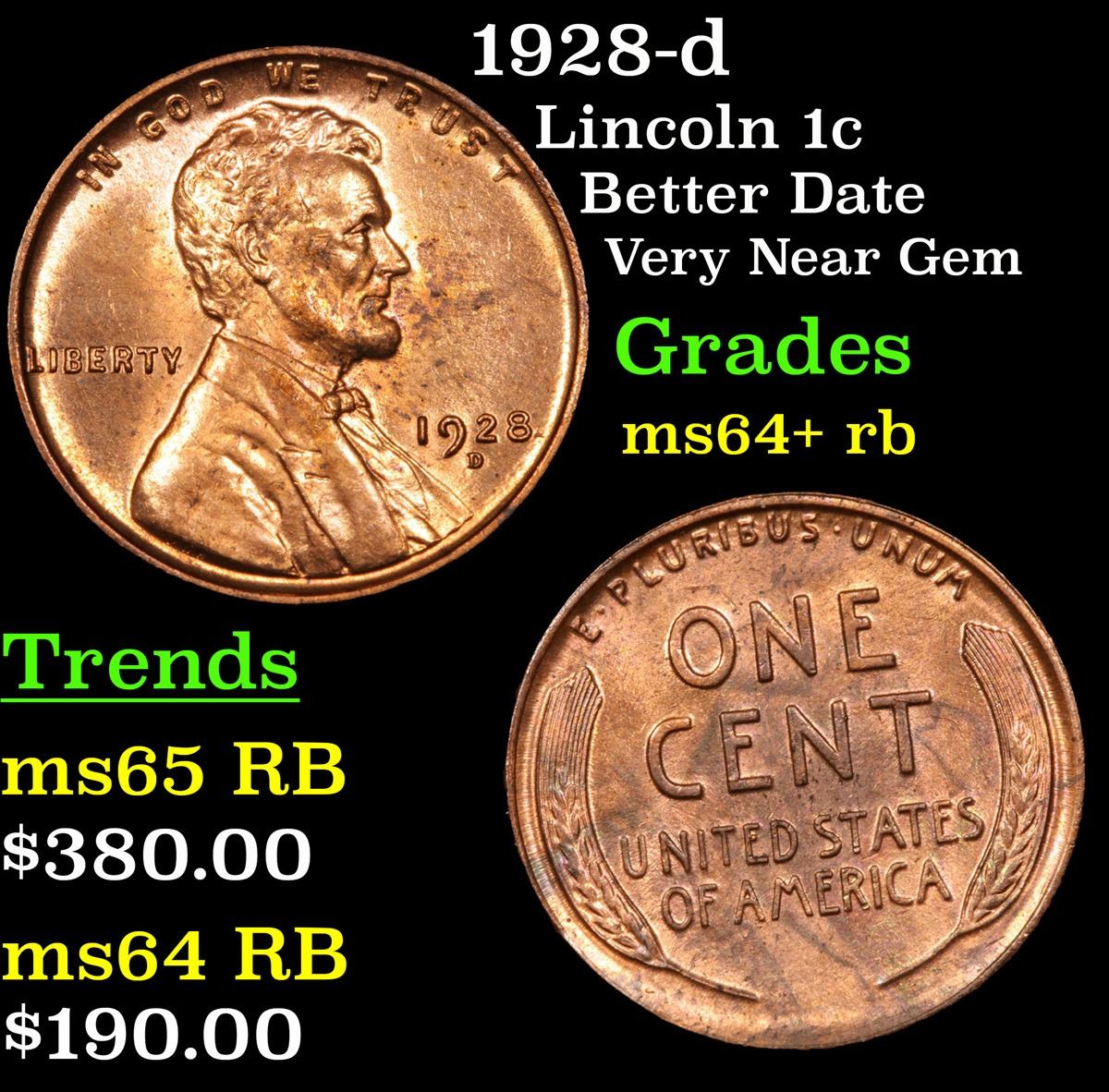 1928-d Better Date Very Near Gem Lincoln Cent 1c Grades Choice+ Unc RB.