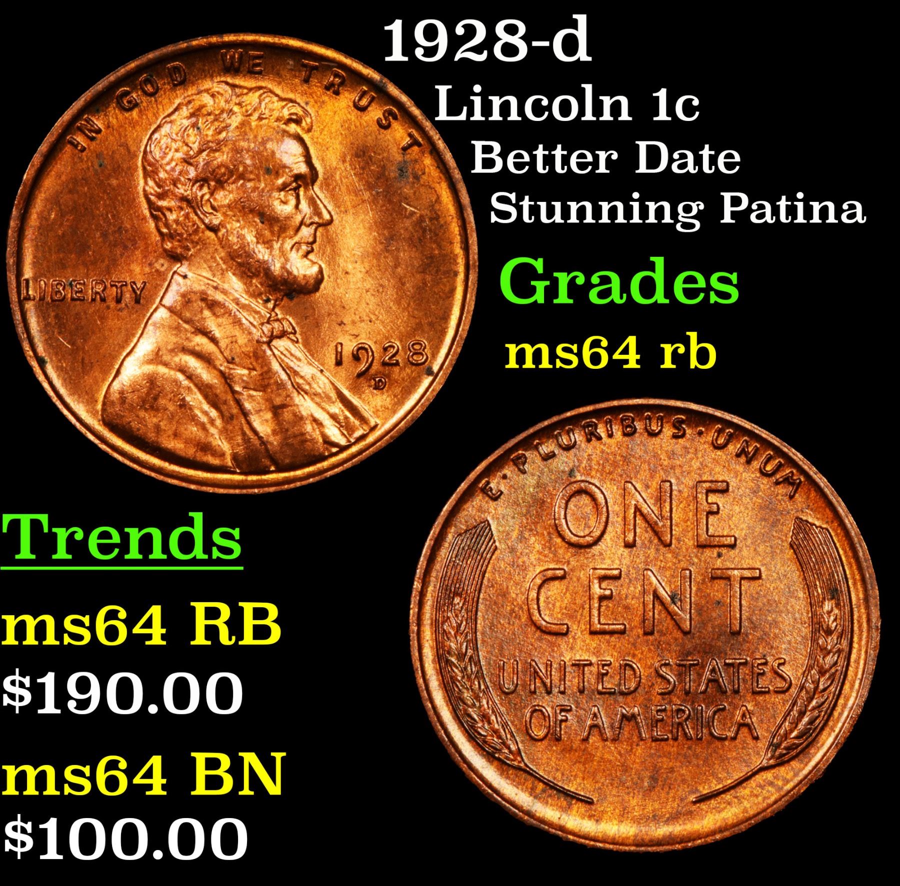 1928-d Lincoln Cent 1c Grades Choice Unc RB.