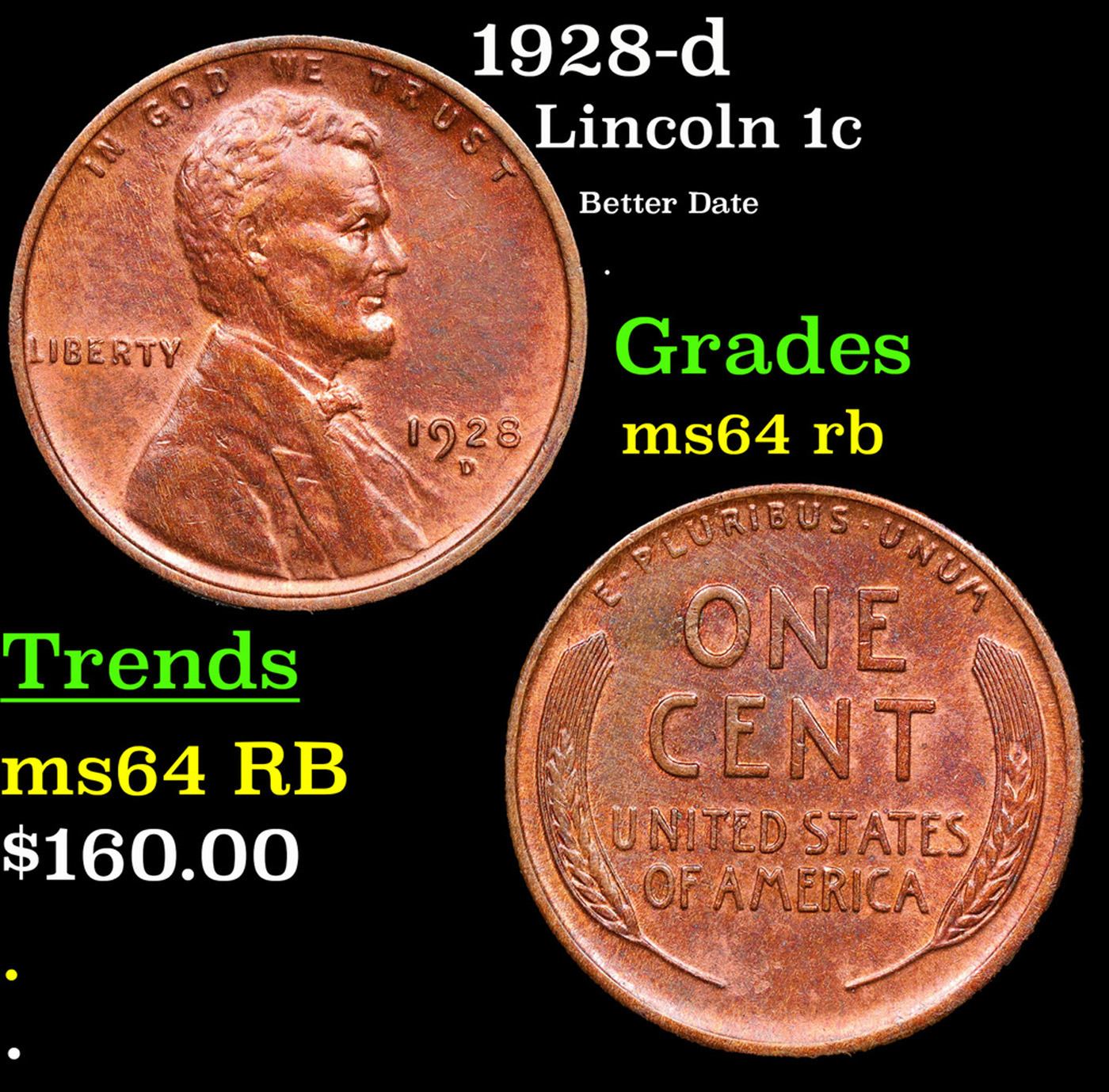 1928-d Lincoln Cent 1c Grades Choice Unc RB.