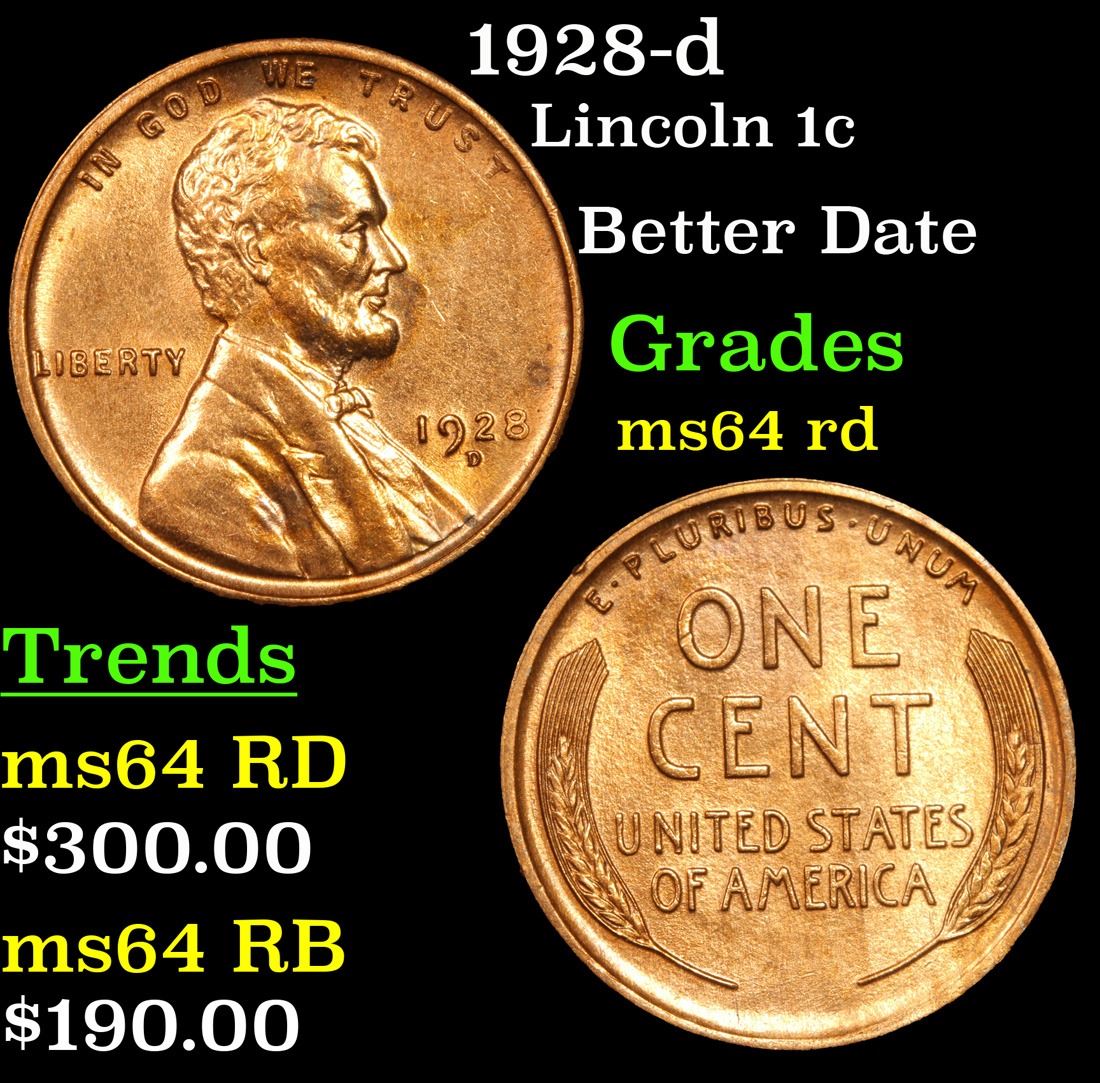 1928-d Better Date . Lincoln Cent 1c Grades Choice Unc RD.