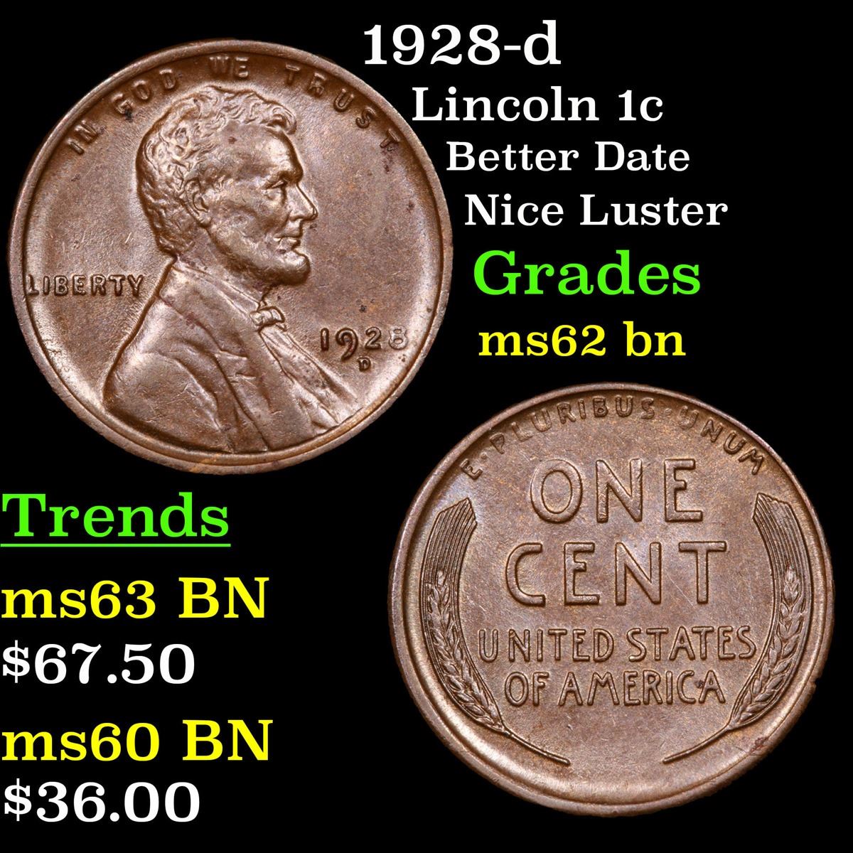 1928-d Better Date Nice Luster Lincoln Cent 1c Grades Select Unc BN.