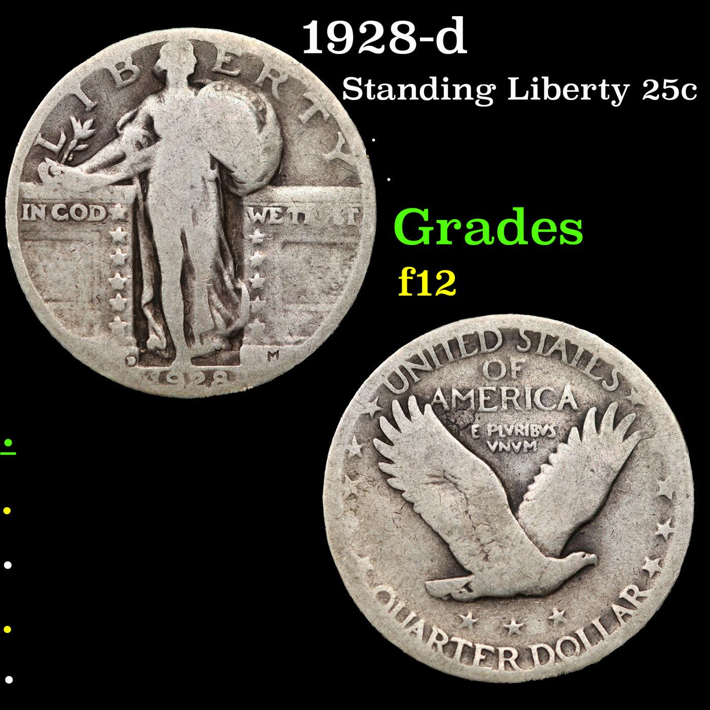 1928-d Standing Liberty Quarter 25c Grades f, fine