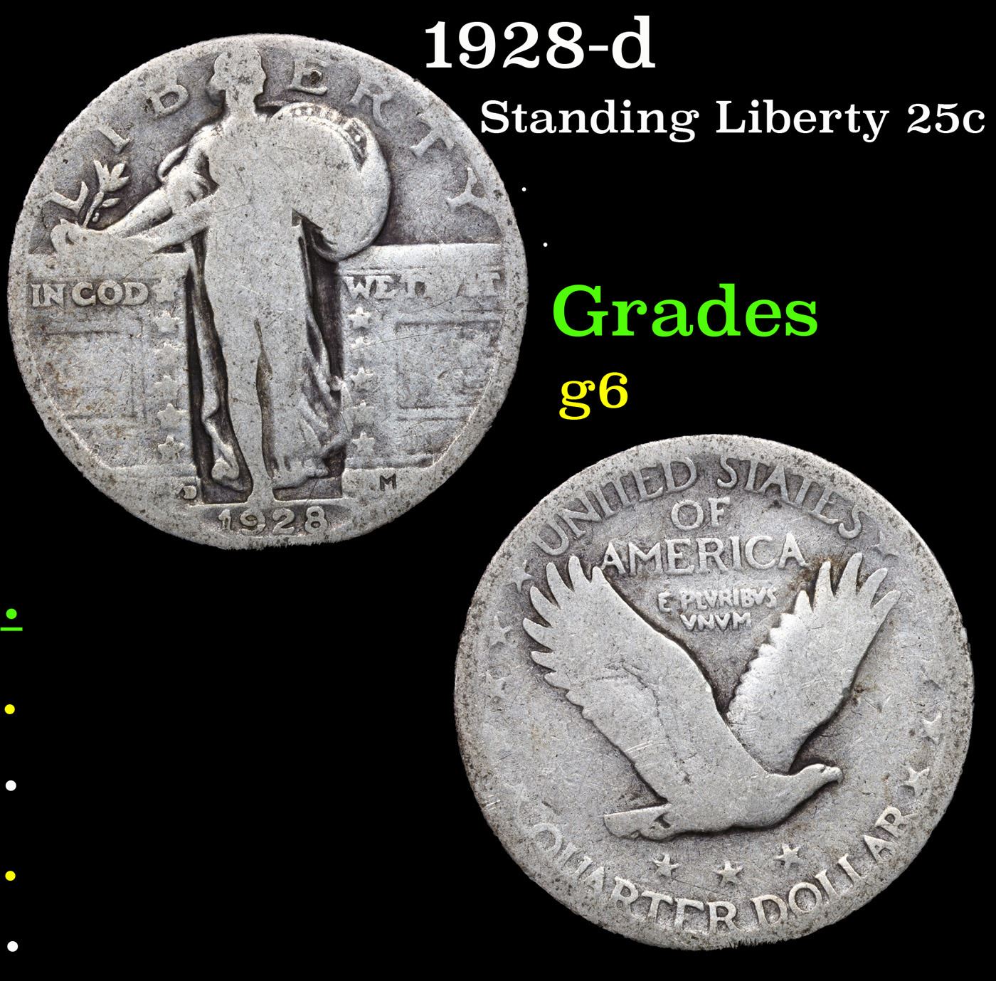 1928-d Standing Liberty Quarter 25c Grades g+.