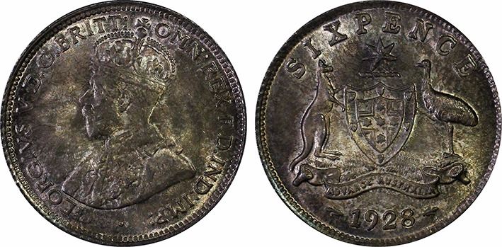 1928(m) Australian Sixpence - PCGS MS 66