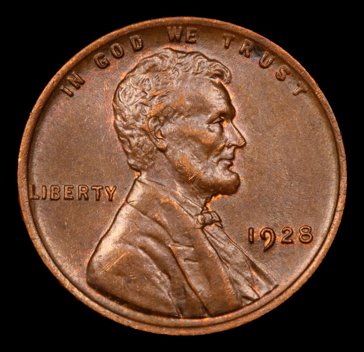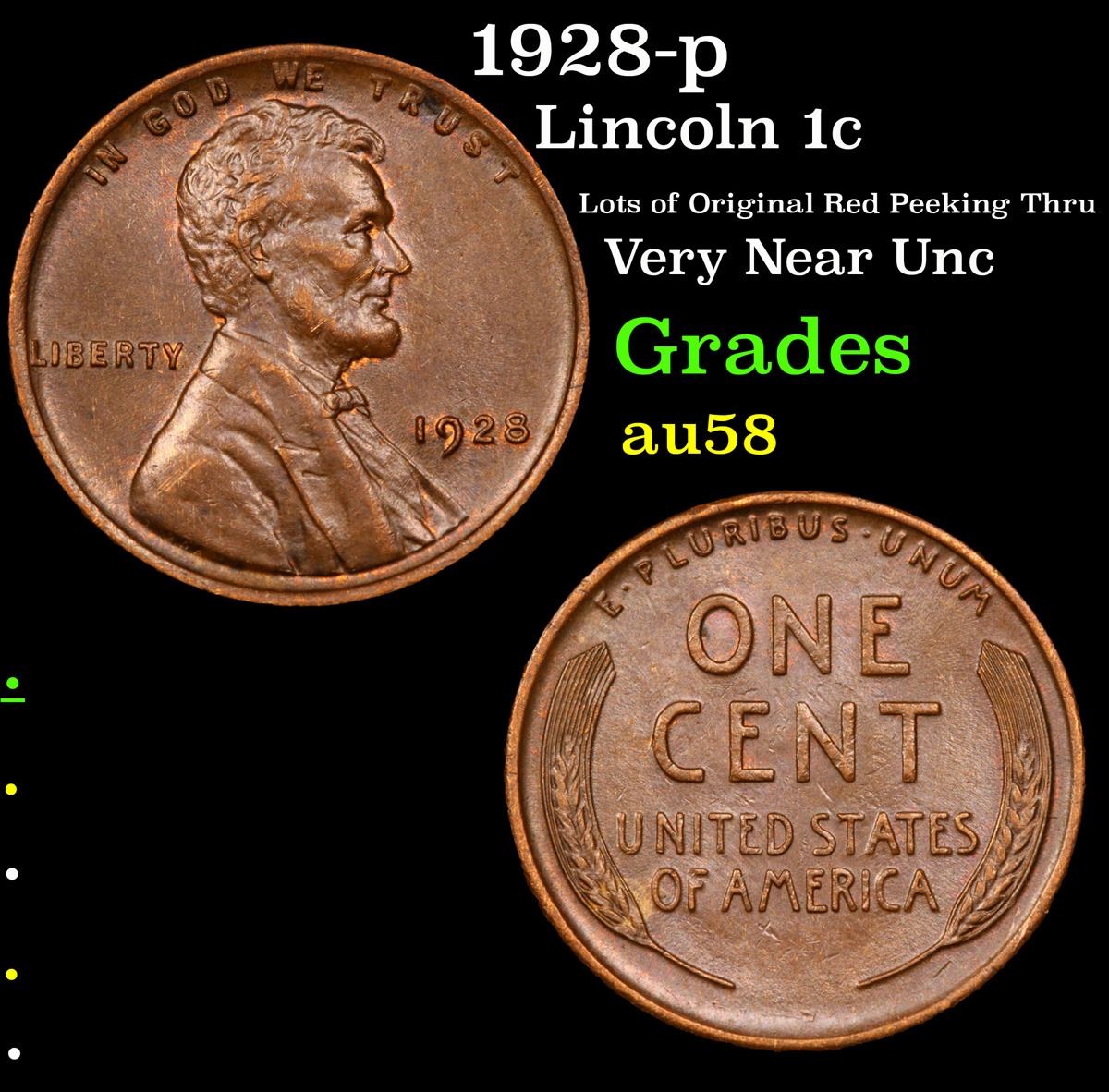 1928-p Lincoln Cent 1c Grades Choice AU/BU Slider.