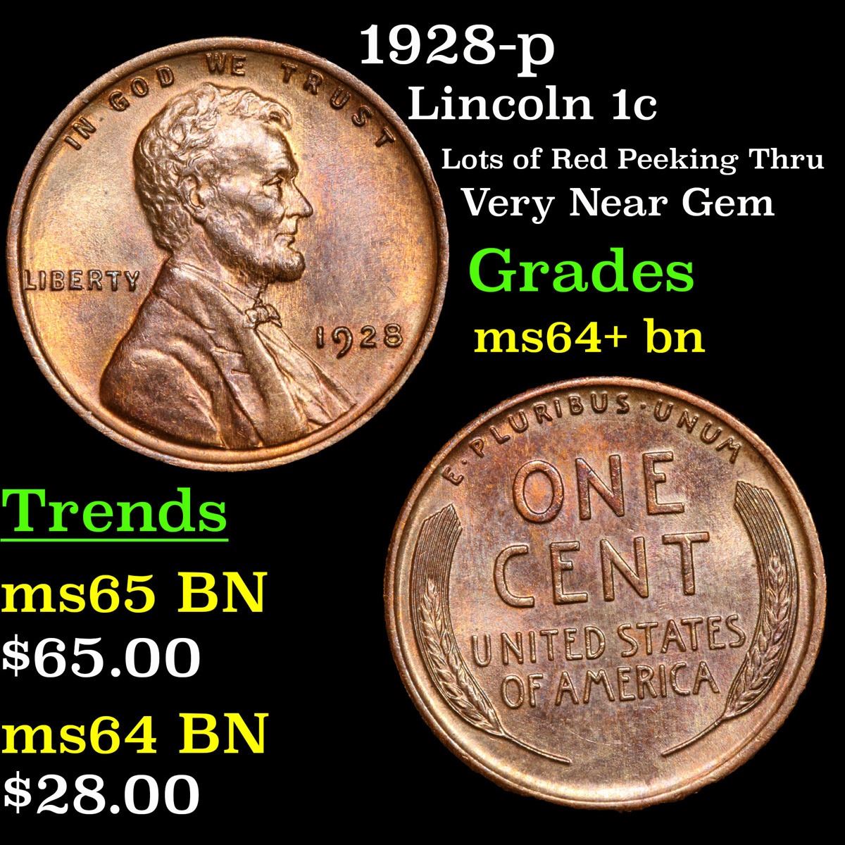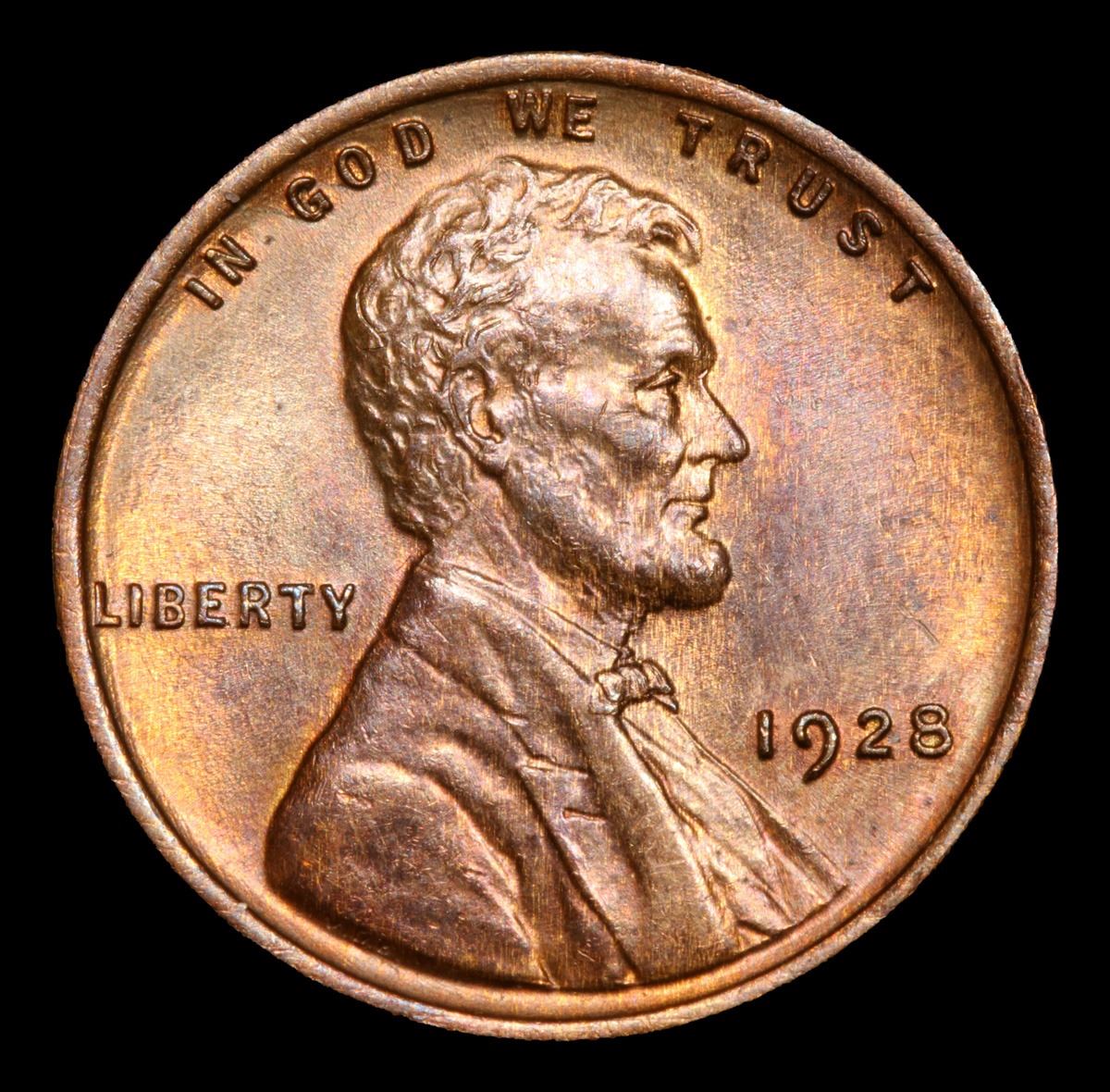 1928-p Lots of Red Peeking Thru Very Near Gem Lincoln Cent 1c Grades Choice+ Unc BN.