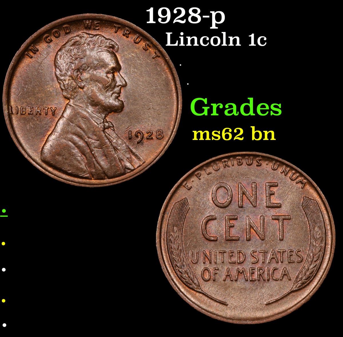 1928-p Lincoln Cent 1c Grades Select Unc BN.