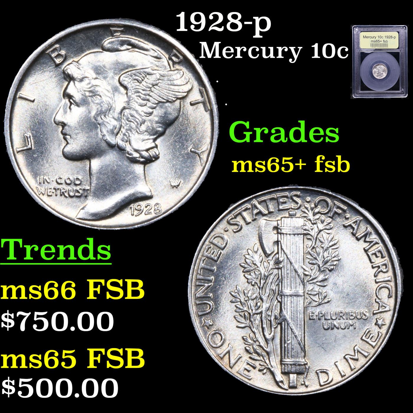 1928-p Mercury Dime 10c Graded GEM+ FSB By USCG.