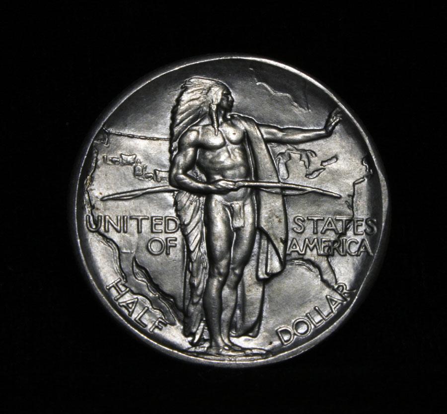 The 28-p is a much scarcer date in this series. We have only offered one other before. The 28-p has a value in the Greysheet in xf of almost double the common dates, at $175 to the common $100. One of the most beautifully designed coins in American History, Designed by the same engraver that designed the Buffalo Nickel, This coin Commemorates the Oregon Trail that brought thousands of Intrepid pioneers to the West in the 1830's and 40's. When Buying an Oregon Trail Commemorative, regardless of year and mint the Points to first show wear are the Indian’s hand and thigh on the obverse and the ox and the bows of the wagon’s cover on the reverse, these are the high points. Coin World's Coin Values lists ms63 at $290 and The Wholesale Greysheet lists ms63 at $215. Estimated Value $250.