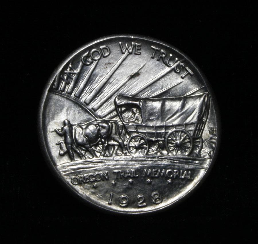Stunning golden toned example. A Great and Lustrous Gem. The 28-p is a much scarcer date in this series. We have never offered one before. One of the most beautifully designed coins in American History, Designed by the same engraver that designed the Buffalo Nickel, This coin Commemorates the Oregon Trail that brought thousands of Intrepid pioneers to the West in the 1830's and 40's. When Buying an Oregon Trail Commemorative, regardless of year and mint the Points to first show wear are the Indian’s hand and thigh on the obverse and the ox and the bows of the wagon’s cover on the reverse, these are the high points. Coin World's Coin Values lists ms66 at $550 and The Wholesale Greysheet lists ms66 at $410. Estimated Value $500.