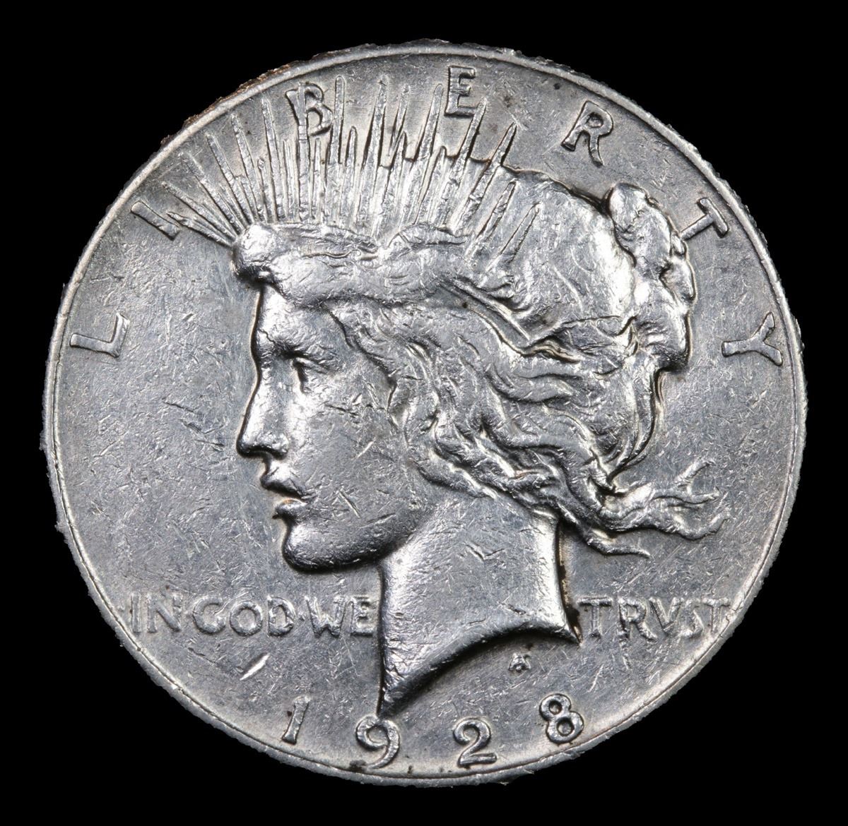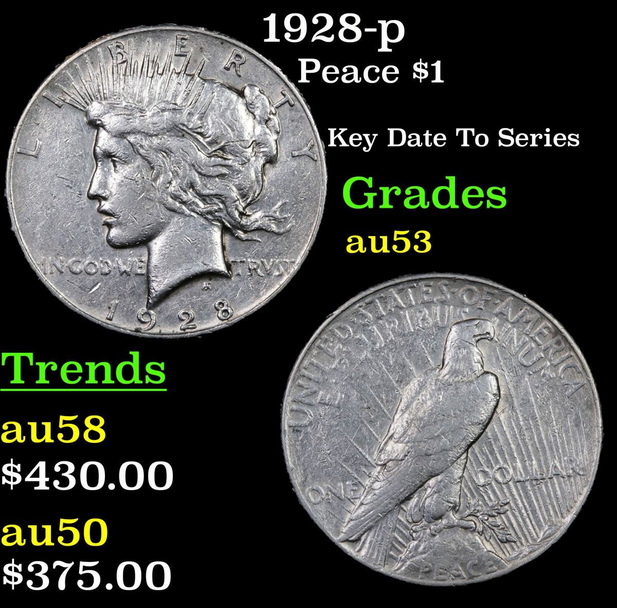 1928-p Peace Dollar $1 Grades Select AU. Incredibly scarce date, lowest mintage in the entire Peace Dollar Series. Scarce in all grades.