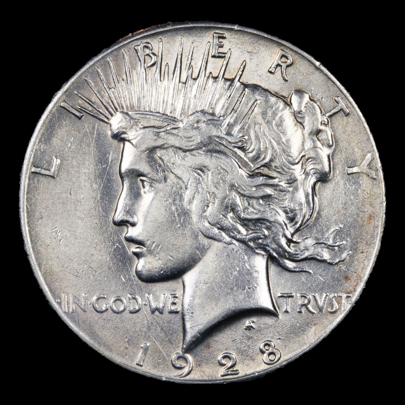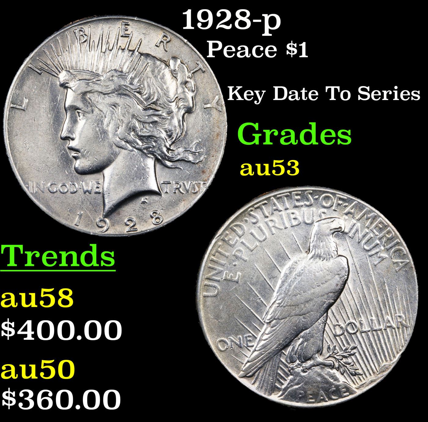 1928-p Peace Dollar $1 Grades Select AU. Incredibly scarce date, lowest mintage in the entire Peace Dollar Series. Scarce in all grades.