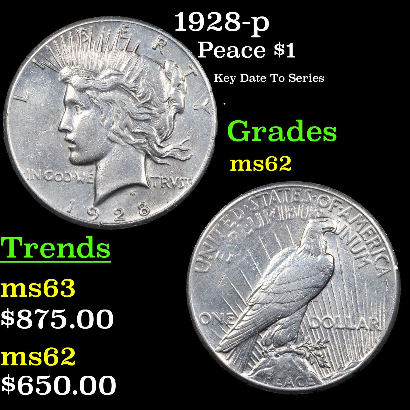 1928-p Peace Dollar $1 Grades Select Unc. Incredibly scarce date, lowest mintage in the entire Peace Dollar Series. Scarce in all grades.