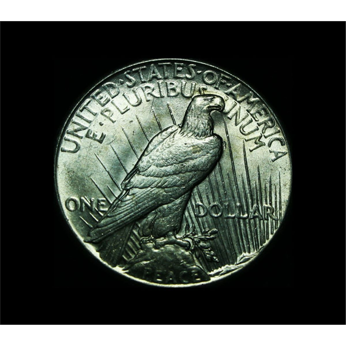 The KEY date to the Peace Dollar Series and it has nice eye appeal and Beautiful Even Luster. NGC's Price Guide lists ms63 at $920 and The Wholesale Greysheet lists ms63 at $735. Estimated Value $825