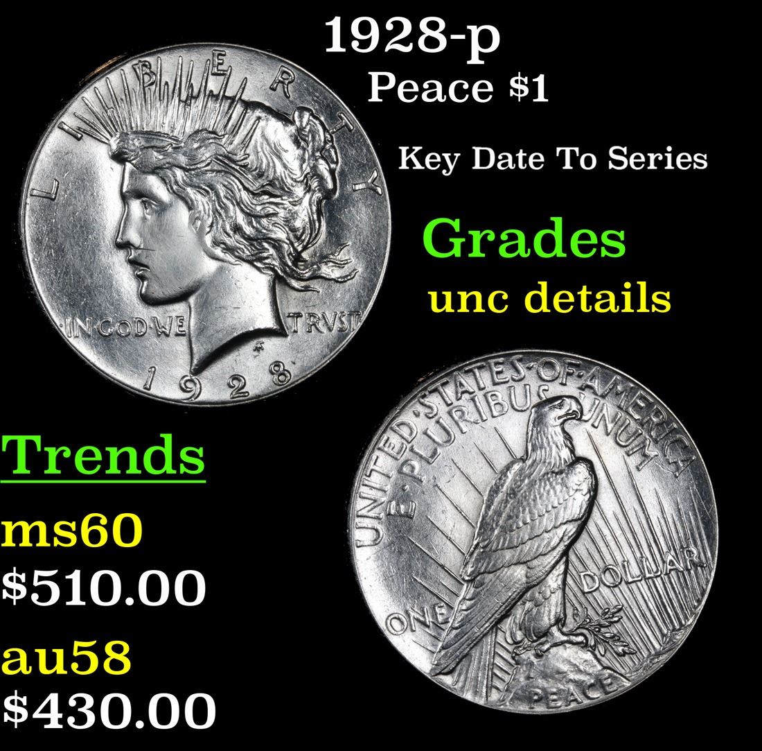 1928-p Key Date To Series . Peace Dollar $1 Grades Unc Details. Incredibly scarce date, lowest mintage in the entire Peace Dollar Series. Scarce in all grades.