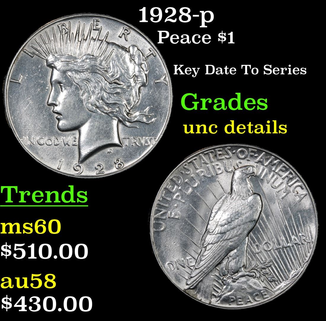 1928-p Key Date To Series . Peace Dollar $1 Grades Unc Details. Incredibly scarce date, lowest mintage in the entire Peace Dollar Series. Scarce in all grades.