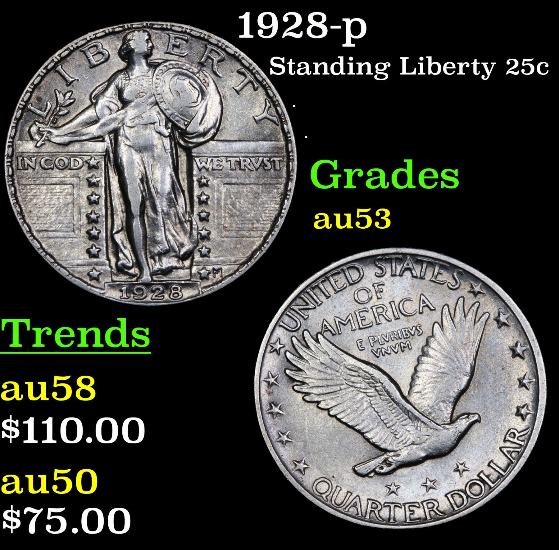 1928-p Standing Liberty Quarter 25c Grades Select AU.
