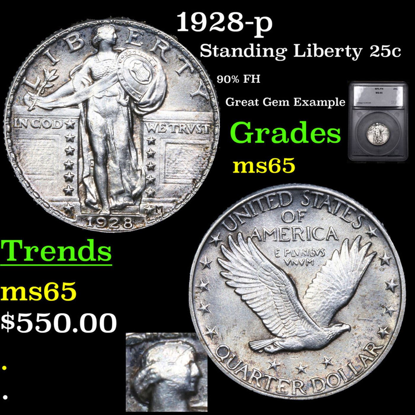 1928-p 90% FH Standing Liberty Quarter 25c Graded ms65 By SEGS.
