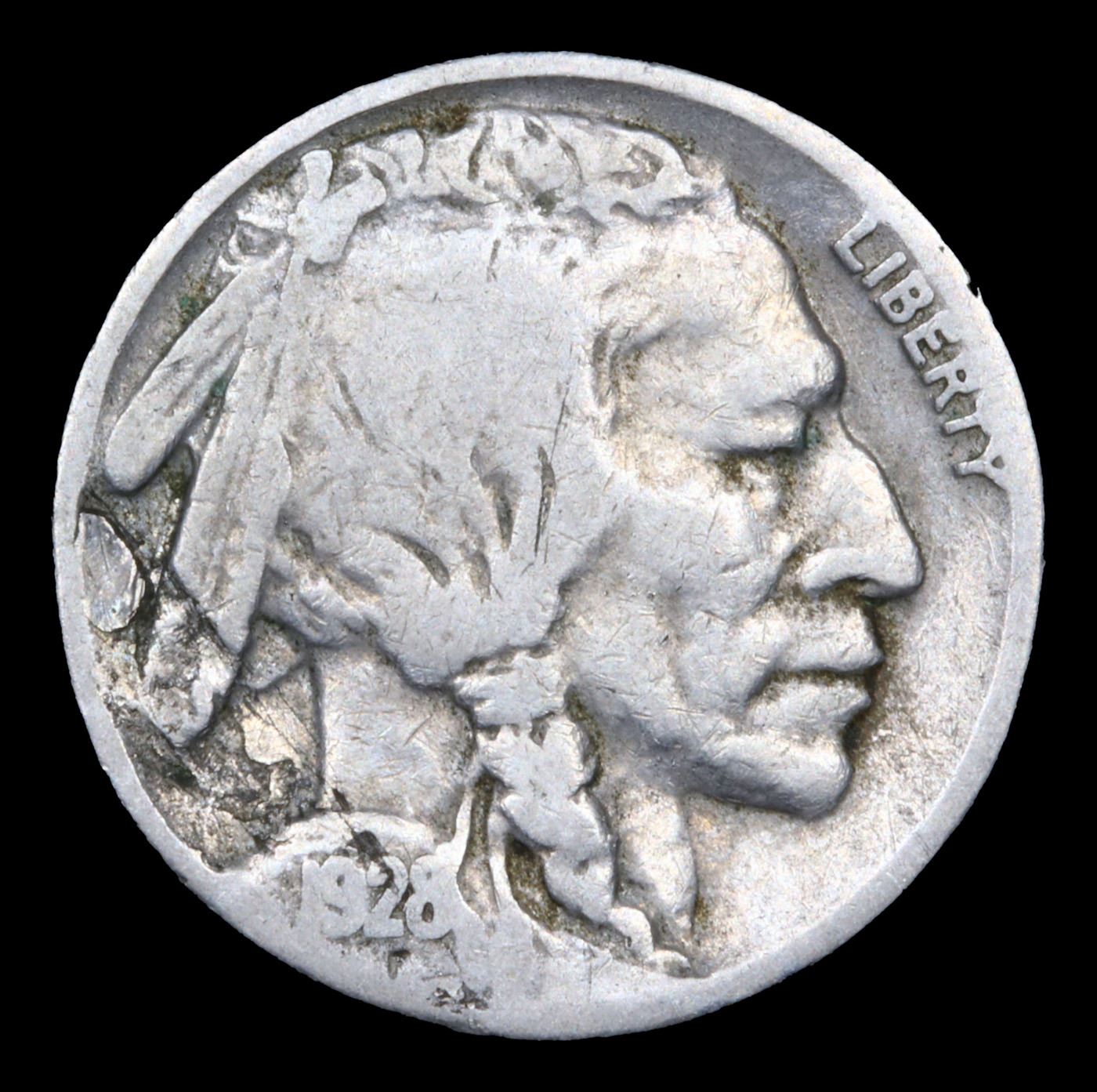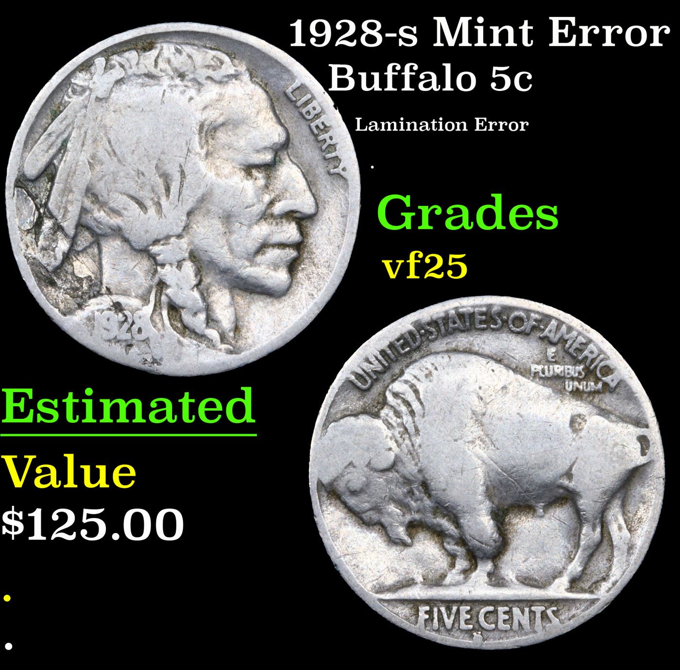 1928-s Mint Error Buffalo Nickel 5c Grades vf+.