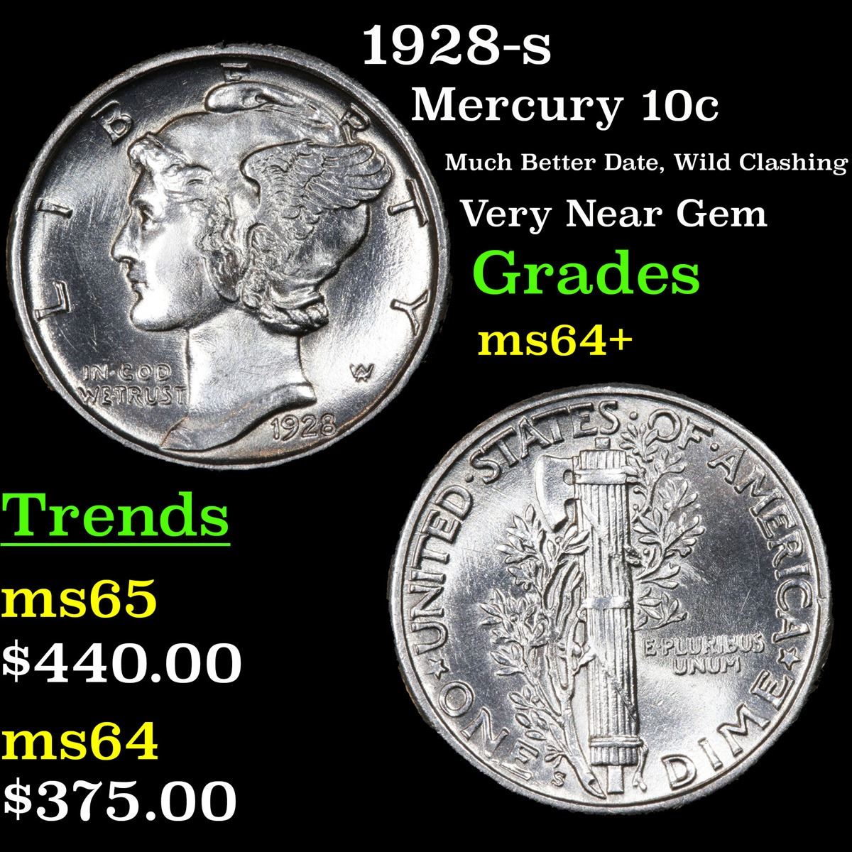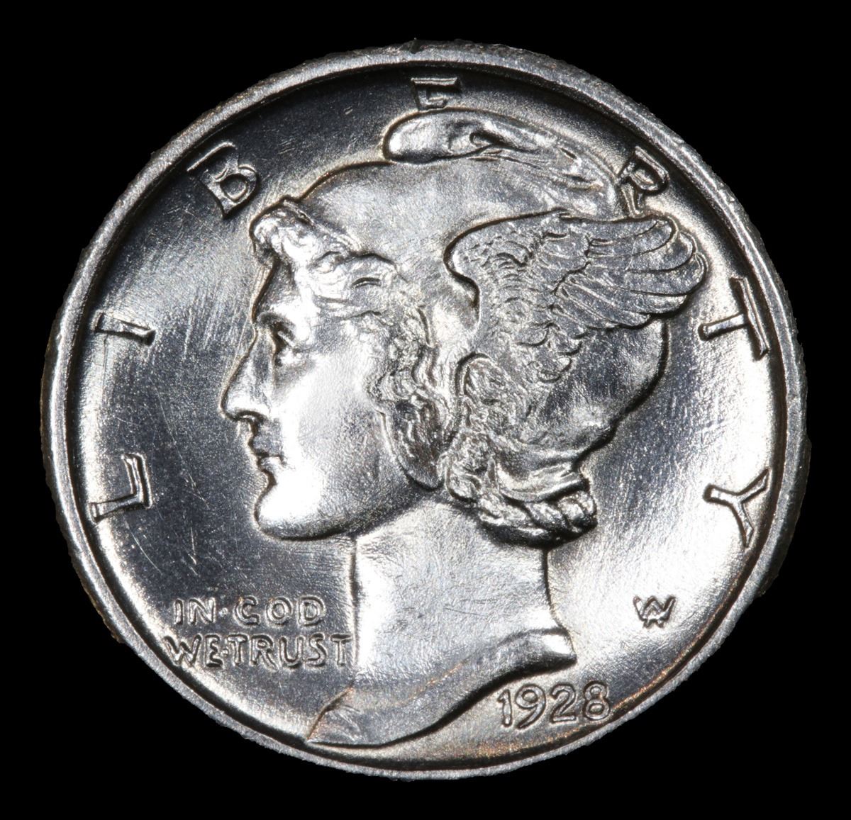 1928-s Much Better Date, Wild Clashing on Obv By face Very Near Gem Mercury Dime 10c Grades Choice+ Unc.