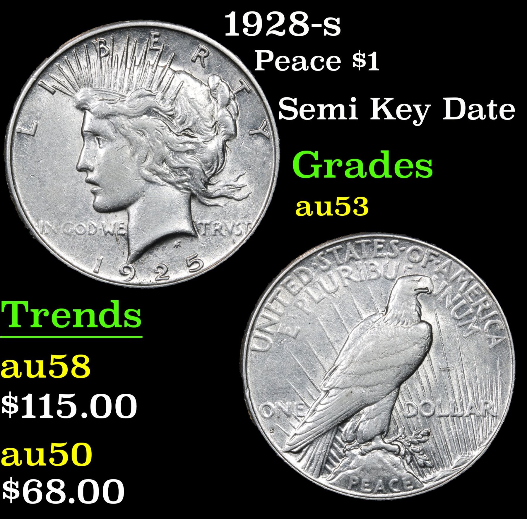 1928-s Semi Key Date . Peace Dollar $1 Grades Select AU.