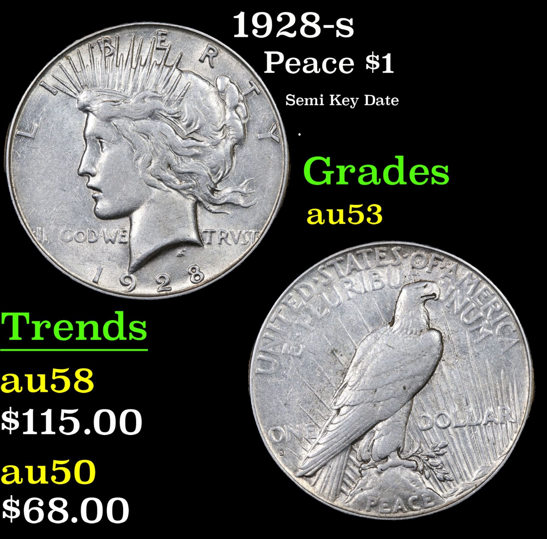 1928-s Semi Key Date . Peace Dollar $1 Grades Select AU.
