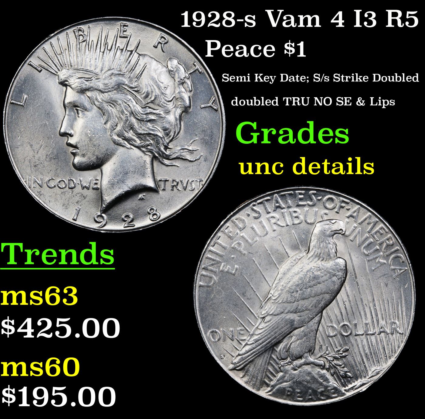 1928-s Vam 4 I3 R5 Peace Dollar $1 Grades Unc Details.