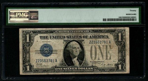One 1928A $1 ERROR Silver Certificate PMG 20.